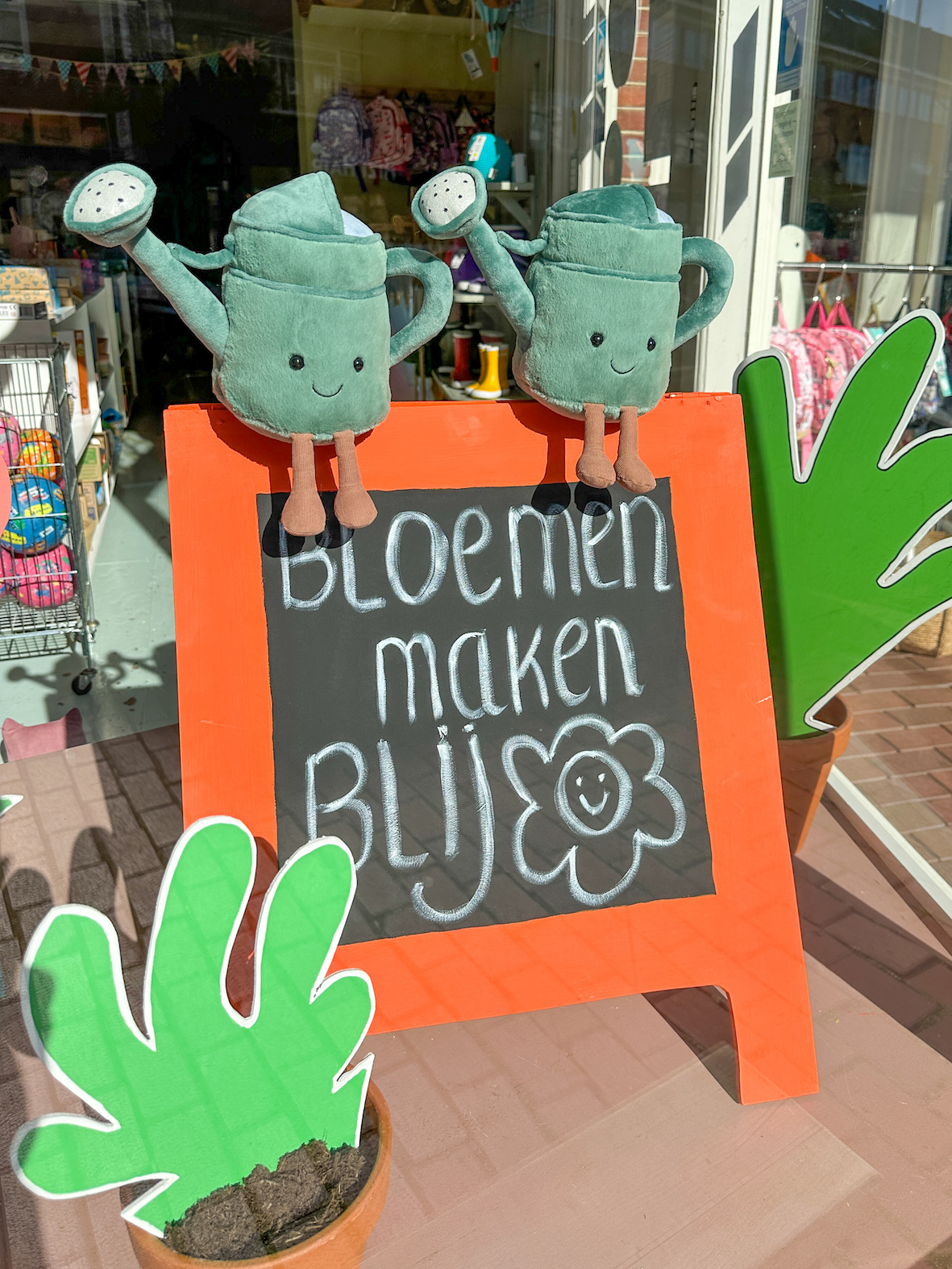 Vos heeft een nieuwe uitdaging. Hij bezit nu een prachtige bloemenwinkel. Voor wie een vers bosje bloemen wilt, is ie bij vos aan het juiste adres. De bloemenwinkel straalt één en al vrolijkheid uit en barst van de heerlijke kleuren en natuurlijk de allerlekkerste geuren. Bloemen maken blij. En dat is ook echt zo. Vandaar deze “quote” op het stoepbord bij de bloemenwinkel van vos.
