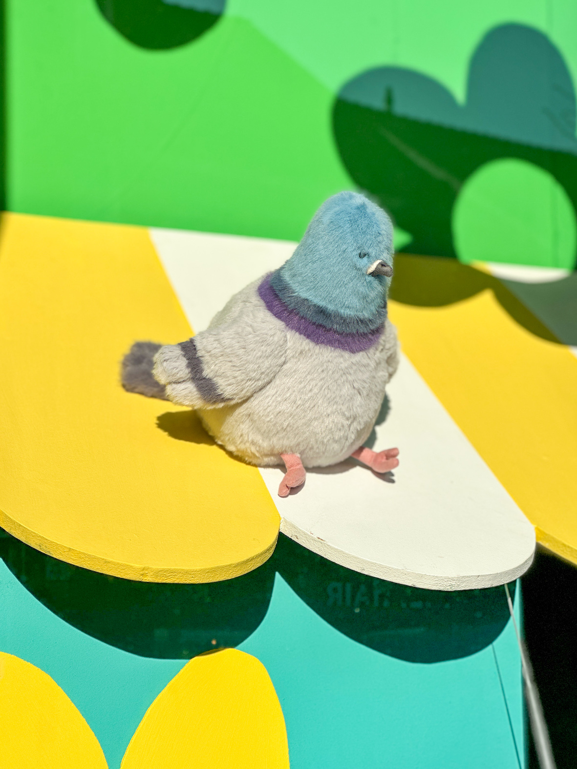 Het is duivenpoep! Deze duif vindt al die vrolijke boel in de bloemenwinkel prachtig en heeft een vast stekkie op de luifel van de winkel. Lekker in het zonnetje. En af en toe een poepje laten vallen. Haai was deze keer de sjaak. Gelukkig is haai geen klant maar een “vervelende” medewerker.