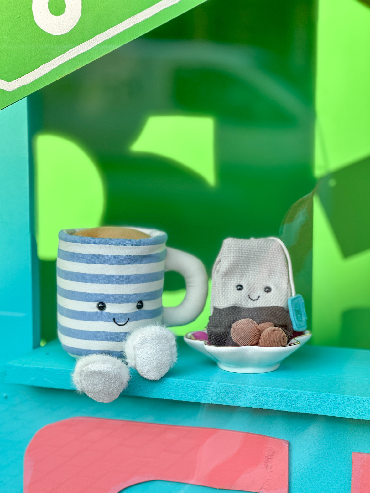 Vos probeert zoveel mogelijk de duiven te beperken. Duiven zijn dol op koekjes, patatjes en broodjes. Dus voor vos geen koekje bij de thee. Maar gelukkig heeft vos het heel erg druk in zijn winkel dus af en toe een slokje uit zijn theemok en weer door met bloemen schikken. En tussentijds opletten voor de rondvliegende poepjes van duif en haai begeleiden bij zijn klusjes.