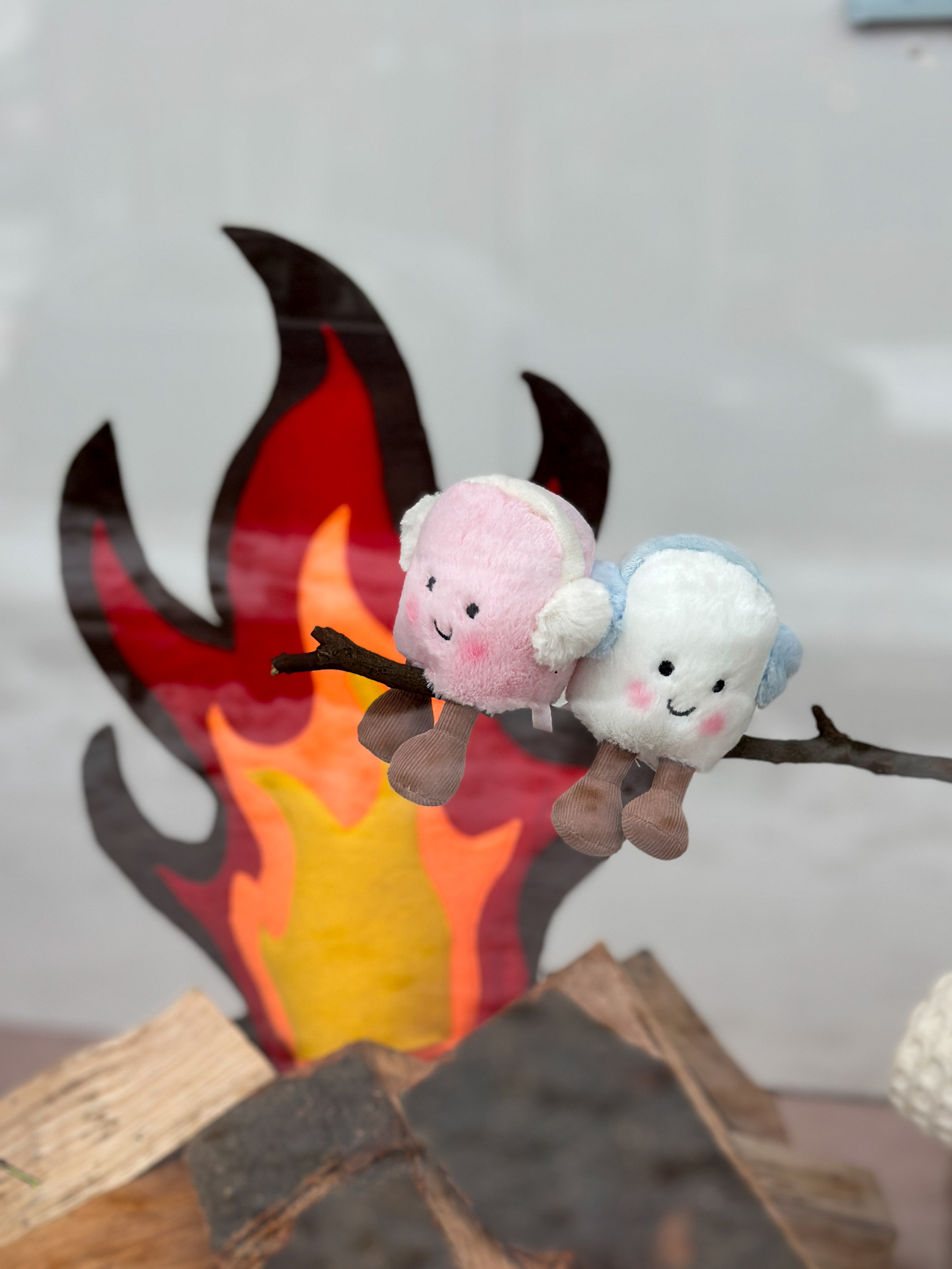 Je ziet… het is daar in de Alpen zo koud dat zelfs de marshmallows oorwarmertjes op hebben. Staat superschattig en is natuurlijk super functioneel. Nu maar hopen dat haai ze niet te lang boven het vuur houdt want anders hebben we niet alleen maar een smeltende sneeuwpop, maar ook smelten deze schatjes op het stokje.