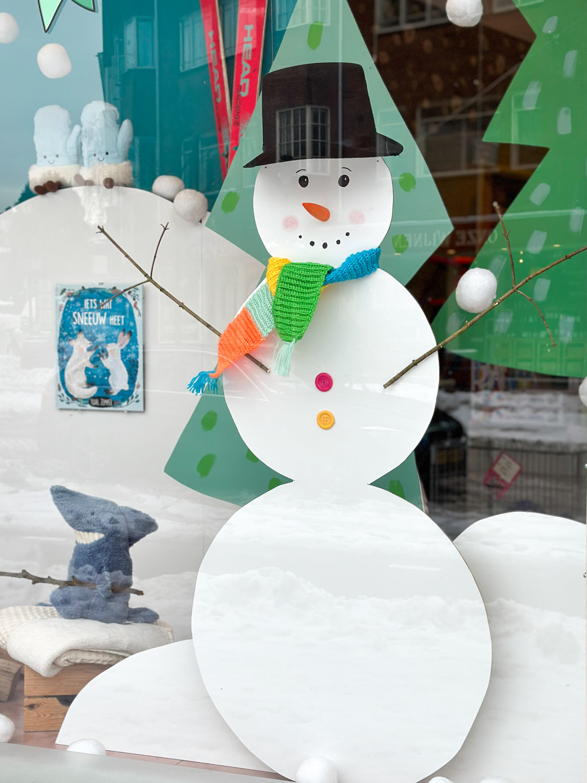 Er zijn ook heuse sneeuwpoppen te vinden. Dat maakt altijd wel het winterse sfeertje compleet. 3 stuks sneeuwballen rollen, op elkaar zetten, hoed op, shawl om en een wortel dient als neus. Takken als armen en voila… de sneeuwpop is gecreëerd.
